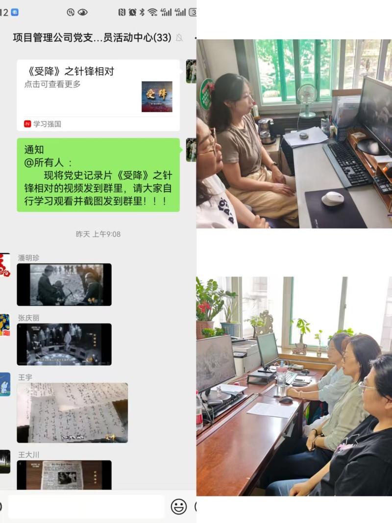 9月1日,項(xiàng)目管理公司黨支部開(kāi)展“重溫歷史 奮勇?tīng)?zhēng)先”主題活動(dòng)?;顒?dòng)中,全體黨員干部共同觀看黨史紀(jì)錄片《受降》,紀(jì)錄片以詳實(shí)的史料、珍貴的影像生動(dòng)展現(xiàn)中國(guó)共產(chǎn)黨始終以人民利益為根本,在復(fù)雜形勢(shì)下堅(jiān)守信仰、運(yùn)籌帷幄的政治智慧和使命擔(dān)當(dāng),引導(dǎo)黨員干部不斷加強(qiáng)黨史學(xué)習(xí),切實(shí)把優(yōu)秀歷史經(jīng)驗(yàn)轉(zhuǎn)化為推動(dòng)工作的實(shí)際行動(dòng)。