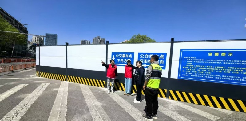 施工以來,集團(tuán)公司全程安排專人值守地鐵口交通導(dǎo)行,多舉措升級現(xiàn)場安全防護(hù)設(shè)施——開辟行人安全通道,協(xié)調(diào)劃定“公交專用通道”,在井蓋四周設(shè)置緩坡與明黃警示帶,為圍擋加裝柔和燈帶……以細(xì)微處的貼心舉措,實(shí)現(xiàn)“施工便民不擾民”。